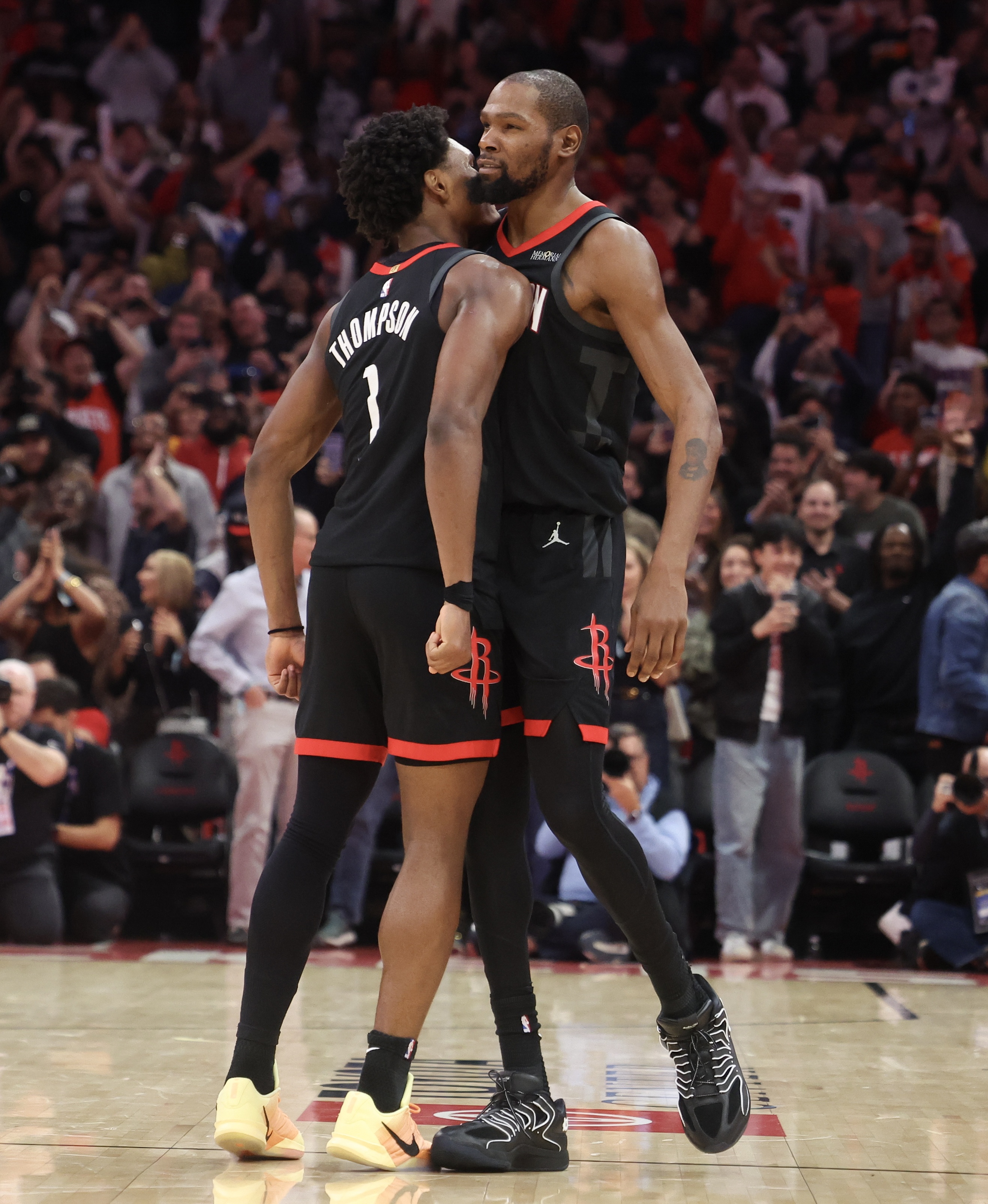 本场比赛杜兰特出战40分钟,投篮24中13,三分球7中3,罚球4中3,砍下32分6篮板5助攻1抢断1盖帽;阿门也出战40分钟15投7中(三分3中2)、罚球8中7,砍下23分12篮板(6个前板)8助攻1抢断。