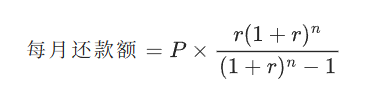 根据 4.69% 的折合年化利率计算,等到七年以后贷款到期,我们一共要付出的利息金额是接近 4 万块钱。计算公式大概长下面这样,其中 P 是贷款本金,r 是月利率,n 是还款期数。